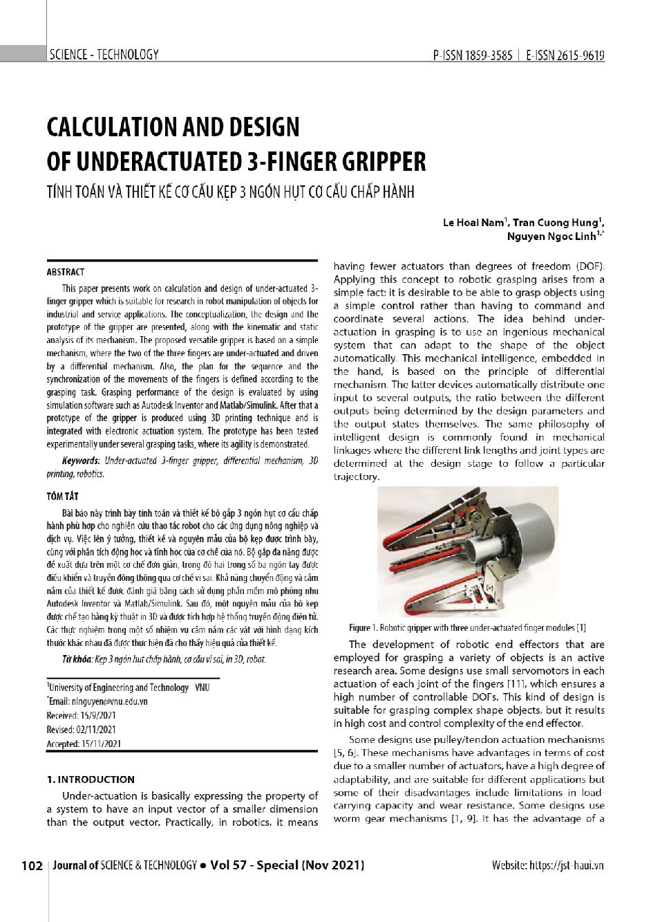 Tính toán và thiết kế cơ cấu kẹp 3 ngón hụt cơ cấu chấp hành = Calculation and design of underactuated 3-finger gripper