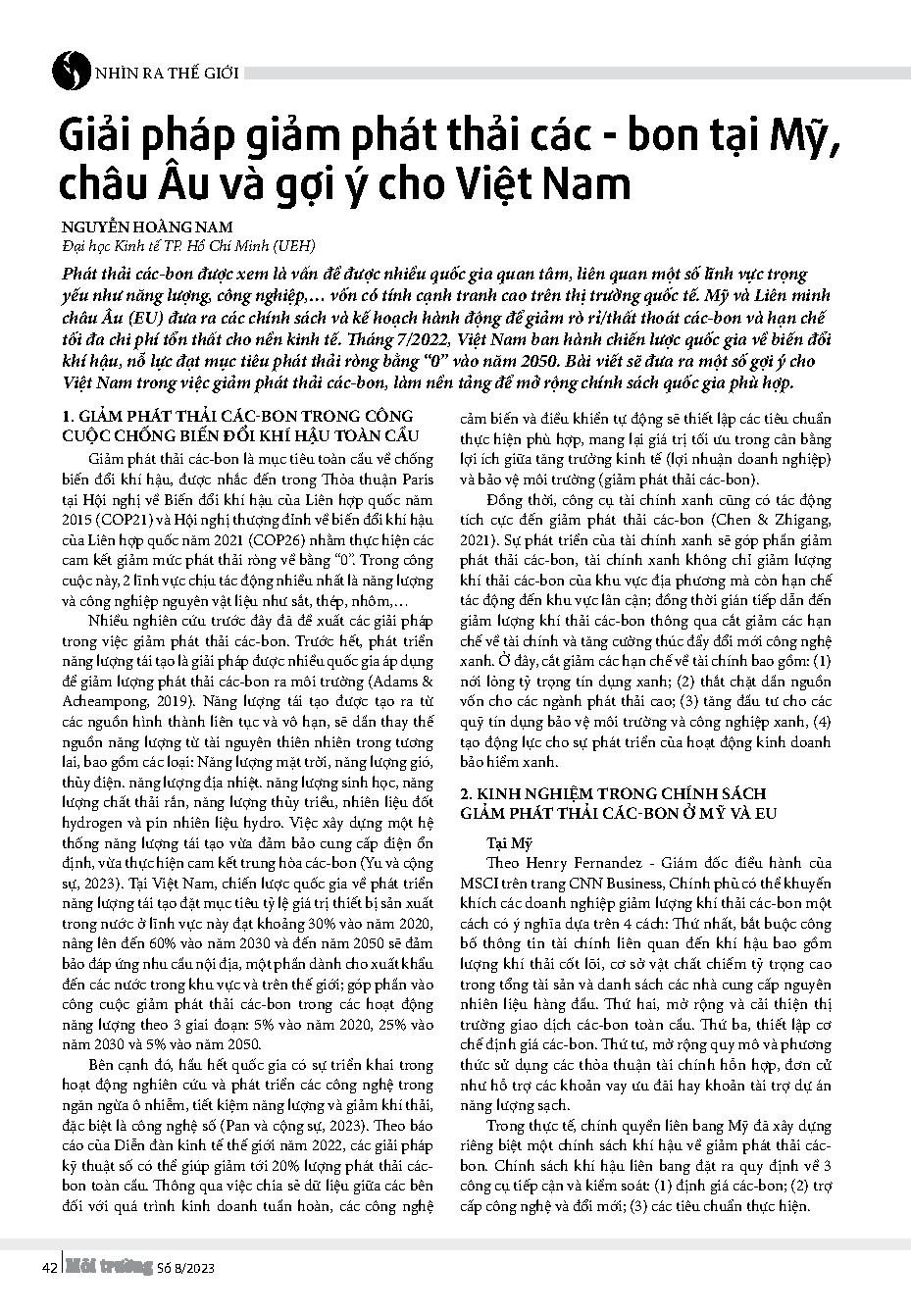 Giải pháp giảm phát thải các - bon tại Mỹ, châu Âu và gợi ý cho Việt Nam