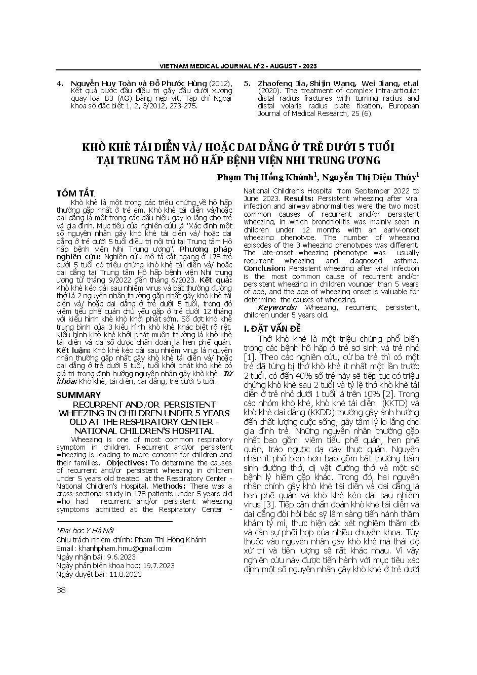 Khò khè tái diễn và/ hoặc dai dẳng ở trẻ dưới 5 tuổi tại Trung tâm Hô hấp Bệnh viện Nhi Trung ương