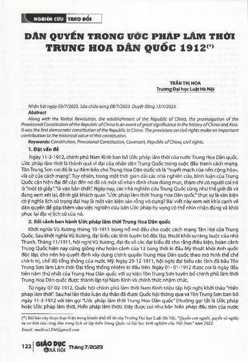 Dân quyén trong Ước pháp lâm thời Trung Hoa Dân quốc 1912 = Civil rights in the Provisional Constitution of the Republic of China (1912).