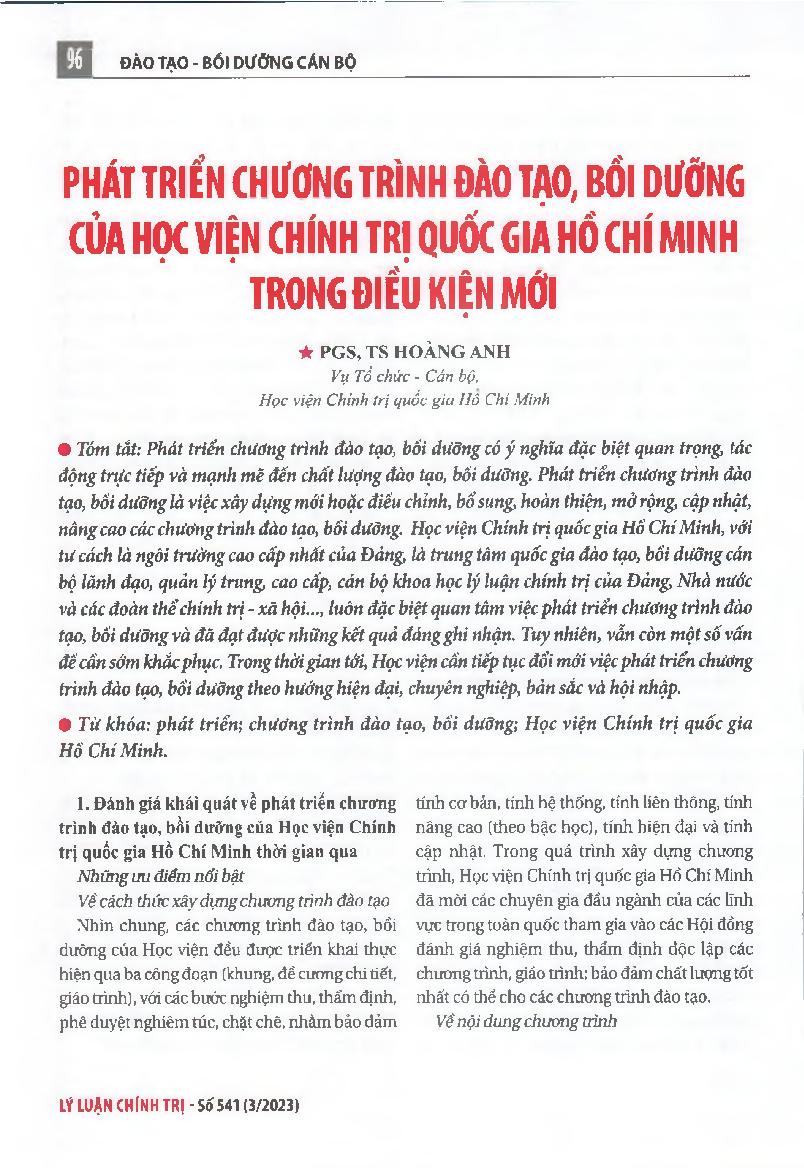 Phát triển chương trình đào tạo, bồi dưỡng của Học viện Chính trị quốc gia Hồ Chí Minh trong điều kiện mới