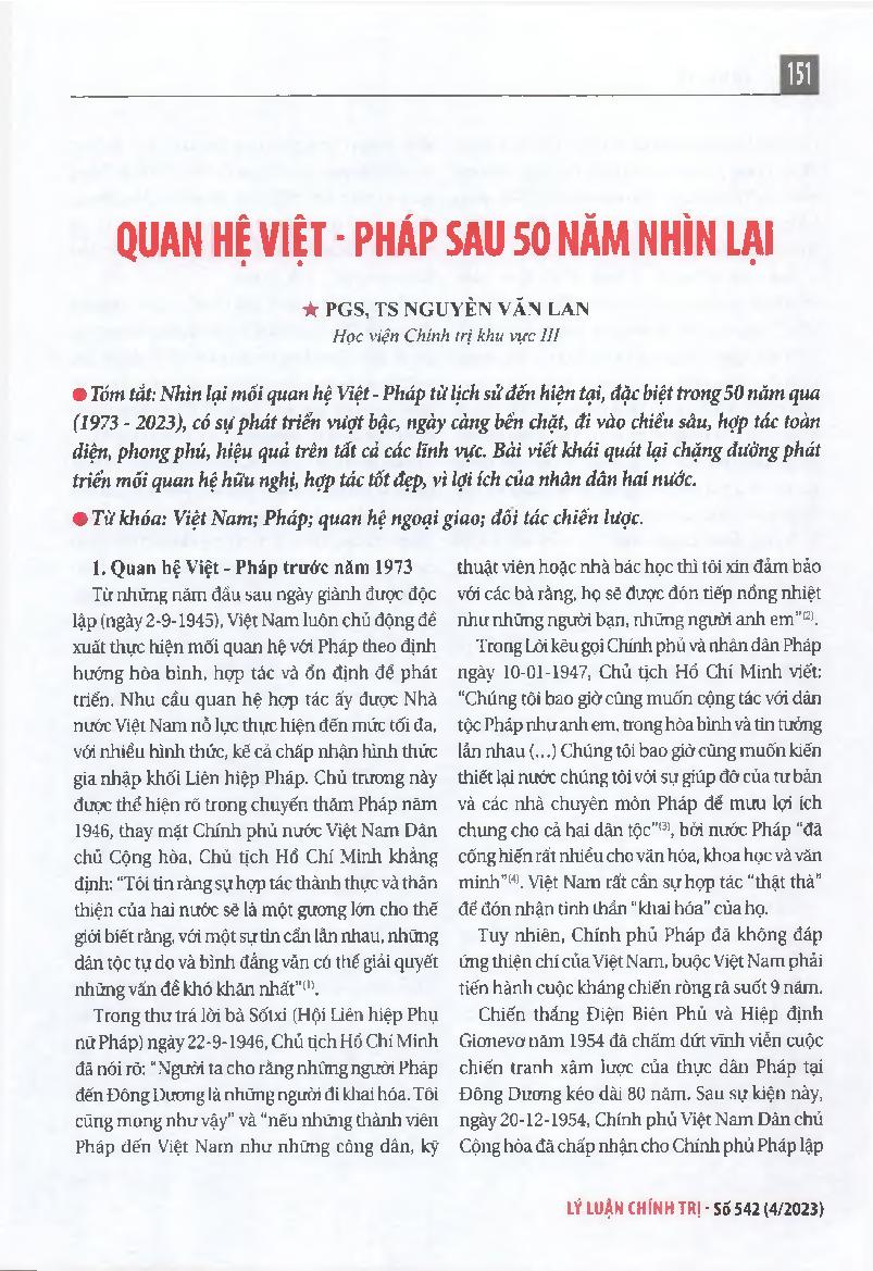 Quan hệ Việt - Pháp sau 50 năm nhìn lại