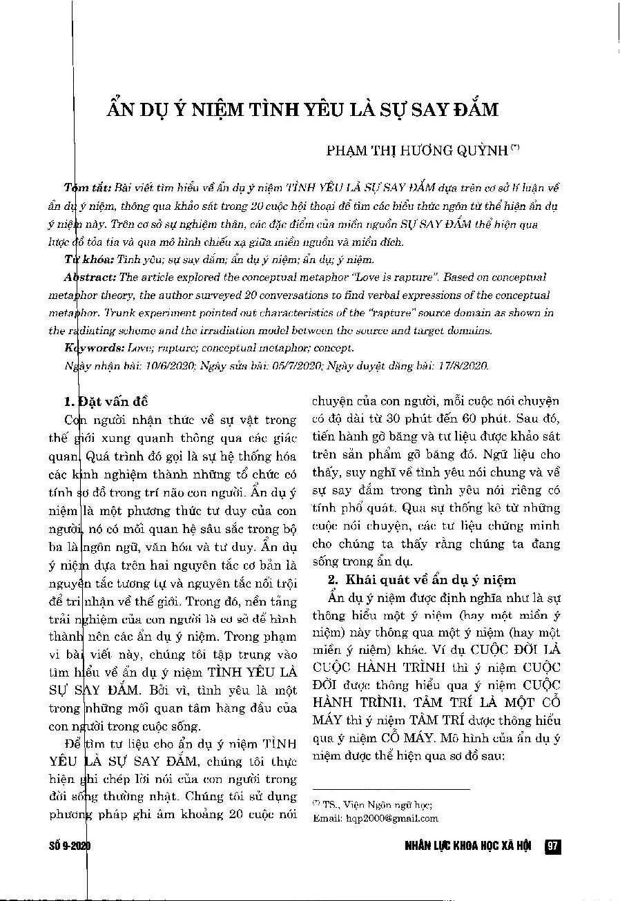Ẩn dụ ý niệm tình yêu là sự say đắm = Conceptual metaphor "Love is rapture"