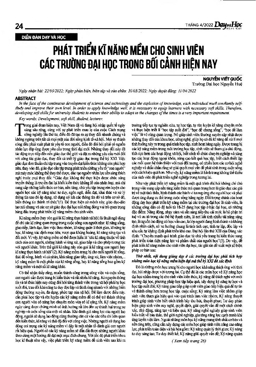 Phát triến kĩ năng mềm cho sinh viên các trường đại học trong bối cảnh hiện nay = Developing soft skills for university students in the current context