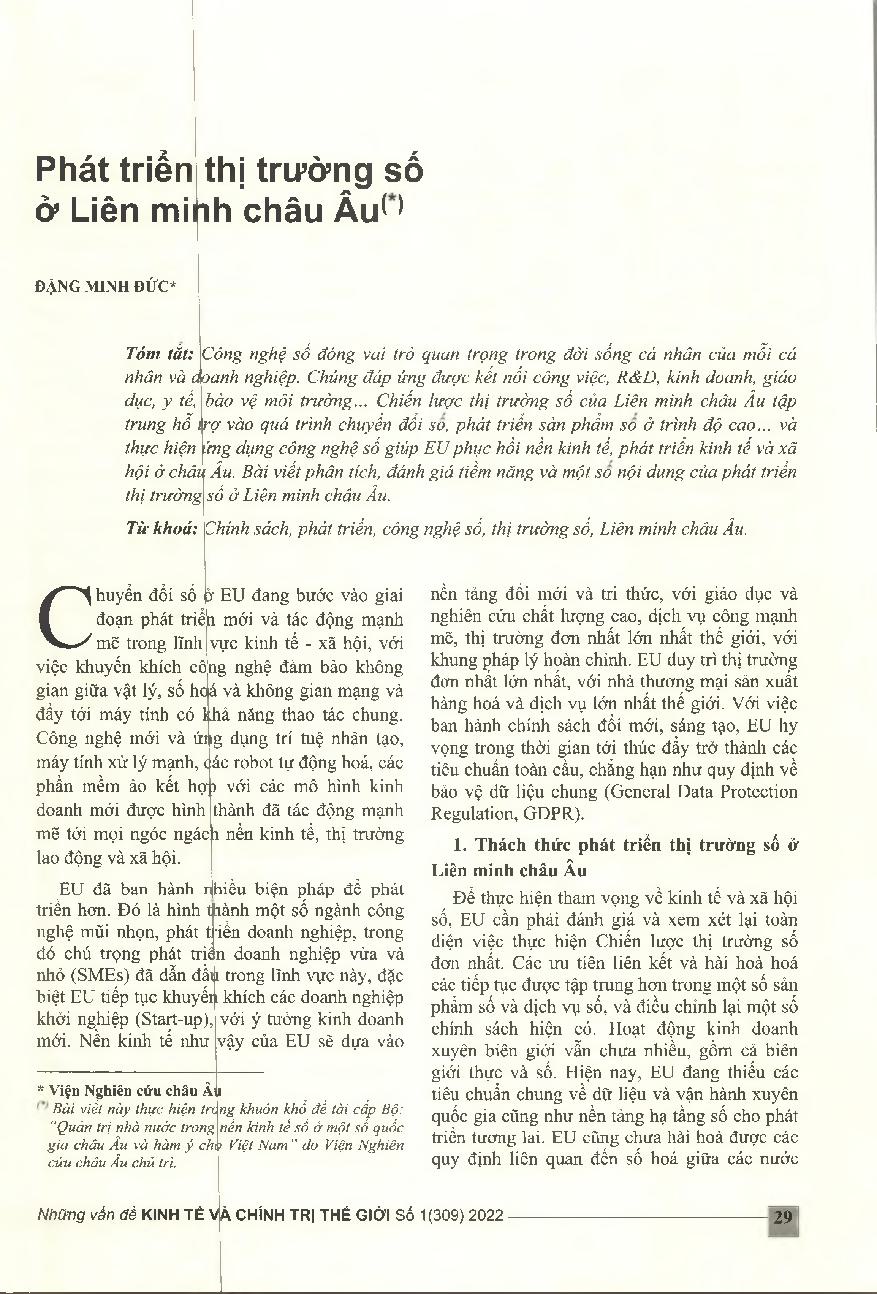 Phát triển thị trường số ở liên minh châu Âu = The European Union’s digital market development strategy