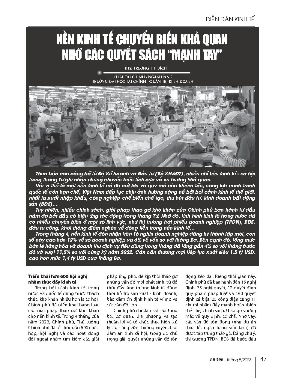 Nền kinh tế chuyển biến khả quan nhờ các quyết sách "mạnh tay" = Economy to move positive through strong policies