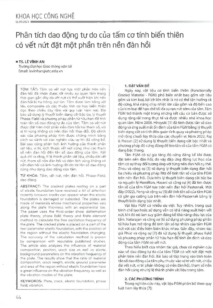 Phân tích dao động tự do của tấm cơ tính biến thiên có vết nứt đặt một phần trên nền đàn hồi = Free vibration analysis of the cracked FG plate partially placed on elastic foundation