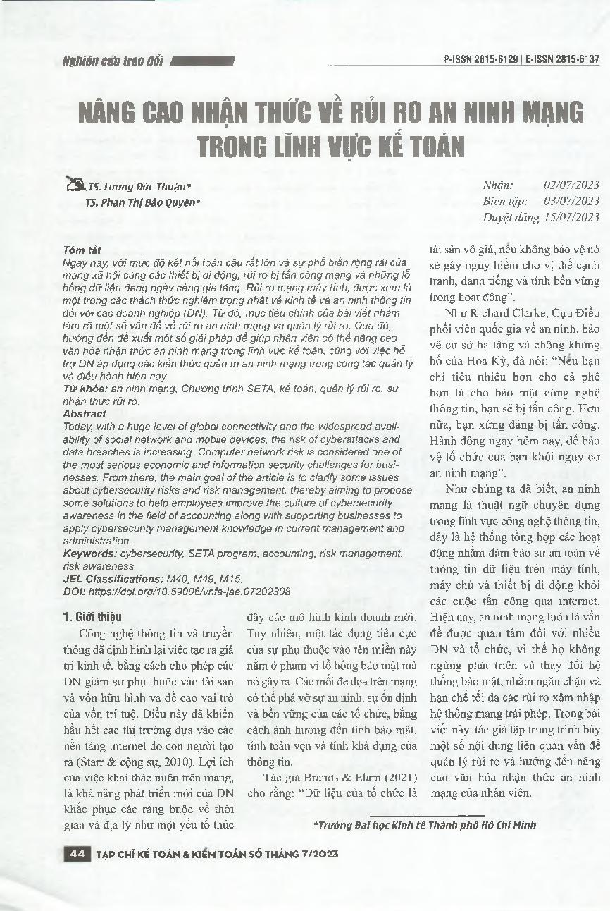 Nâng cao nhận thức về rủi ro an ninh mạng Trong lĩnh vực kế toán