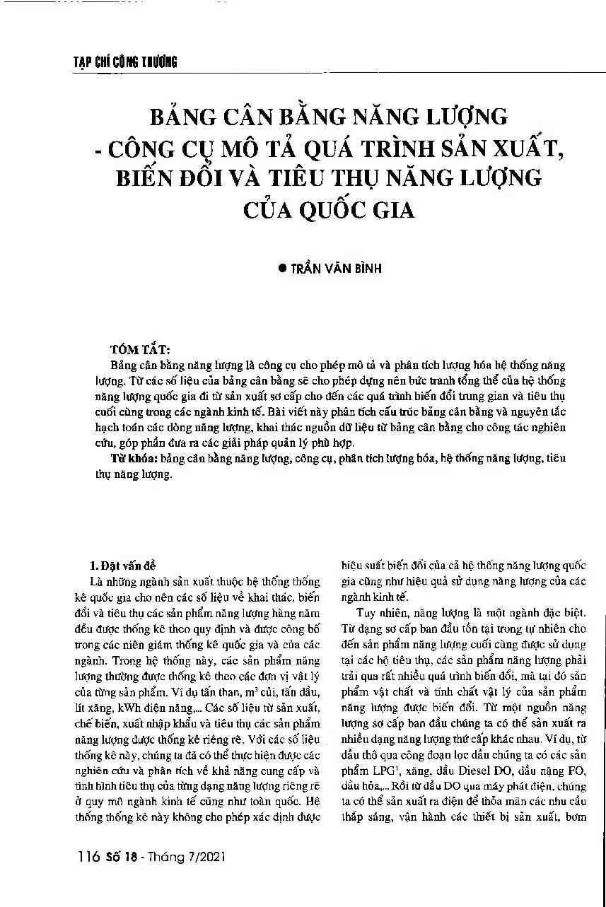 Bâng cân bằng năng lượng - công cụ mô tả quá trình sản xuất, biến đổi và tiêu thụ năng lượng của quốc gia = The energy balance sheet - The tool presents the national energy production, transformation and consumption