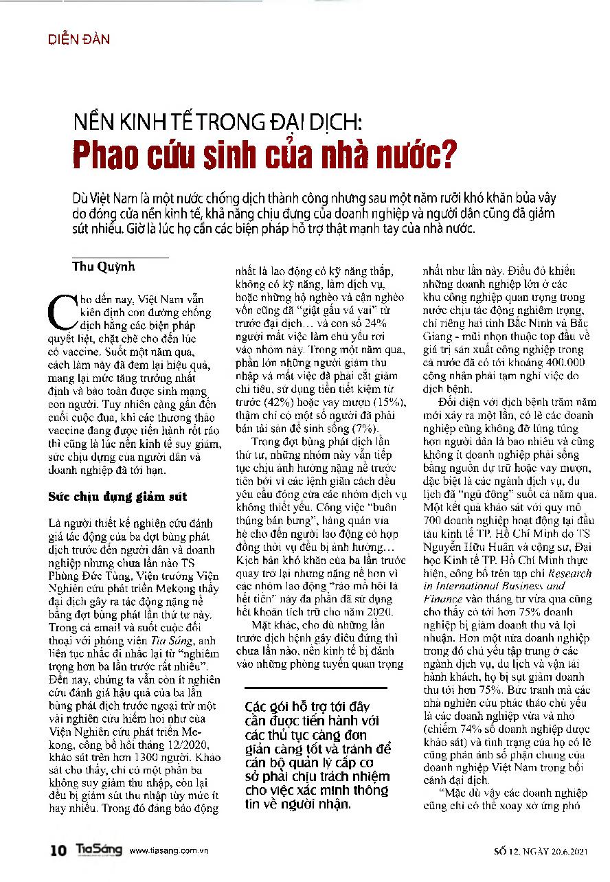 Nền kinh tế trong đại dịch: Phao cứu sinh của nhà nước ?
