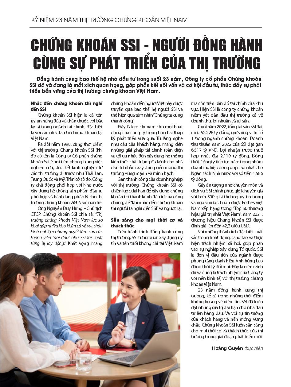 Chứng khoán SSI - người đồng hành cùng sự phát triển của thị trường