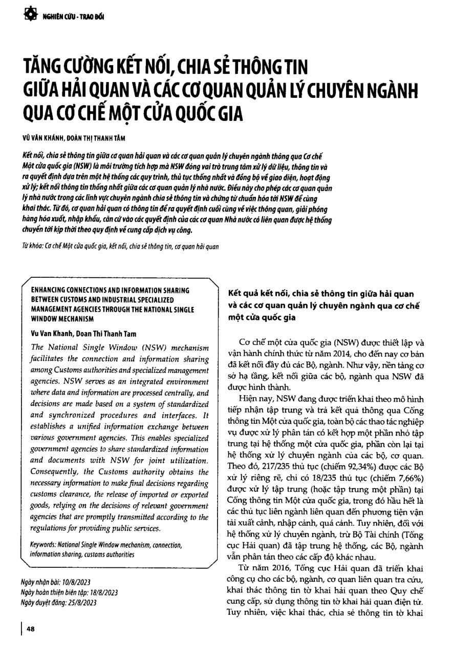 Tăng cường kết nối, chia sẻ thông tin giữa hải quan và các cơ quan quản lý chuyên ngành qua Cơ chế một cửa quốc gia