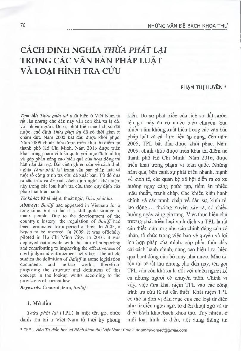 Cách định nghĩa thừa phát lại trong các văn bản pháp luật và loại hình tra cứu = How to define bailiff in legal documents and types of search