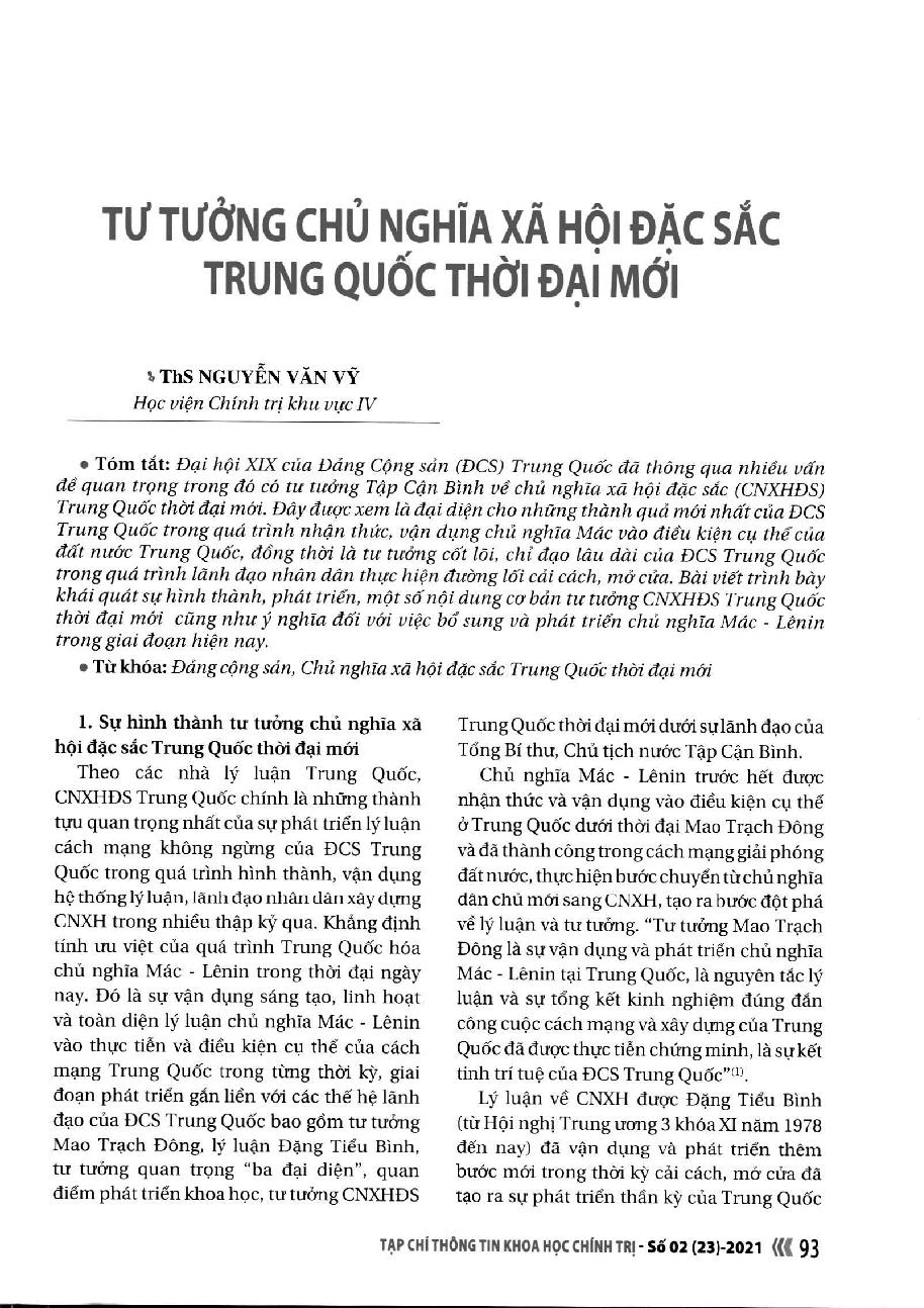 Tư tưởng chủ nghĩa xã hội đặc sắc Trung Quốc thời đại mới