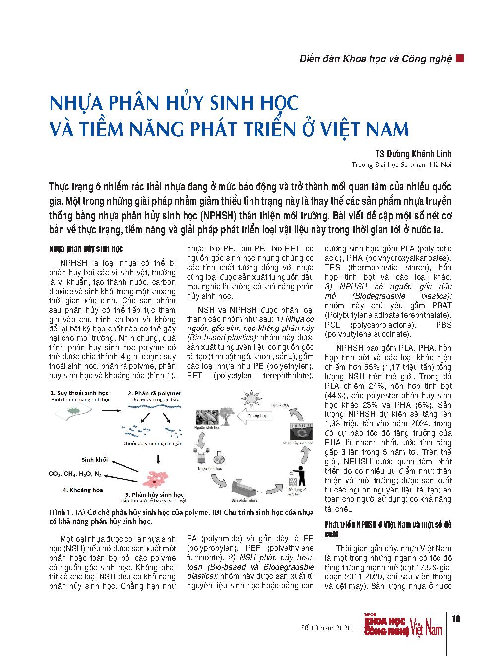 Biodegradable plastics and potential development in Vietnam. = Nhựa phân hủy sinh học và tiềm năng phát triển ở Việt Nam.