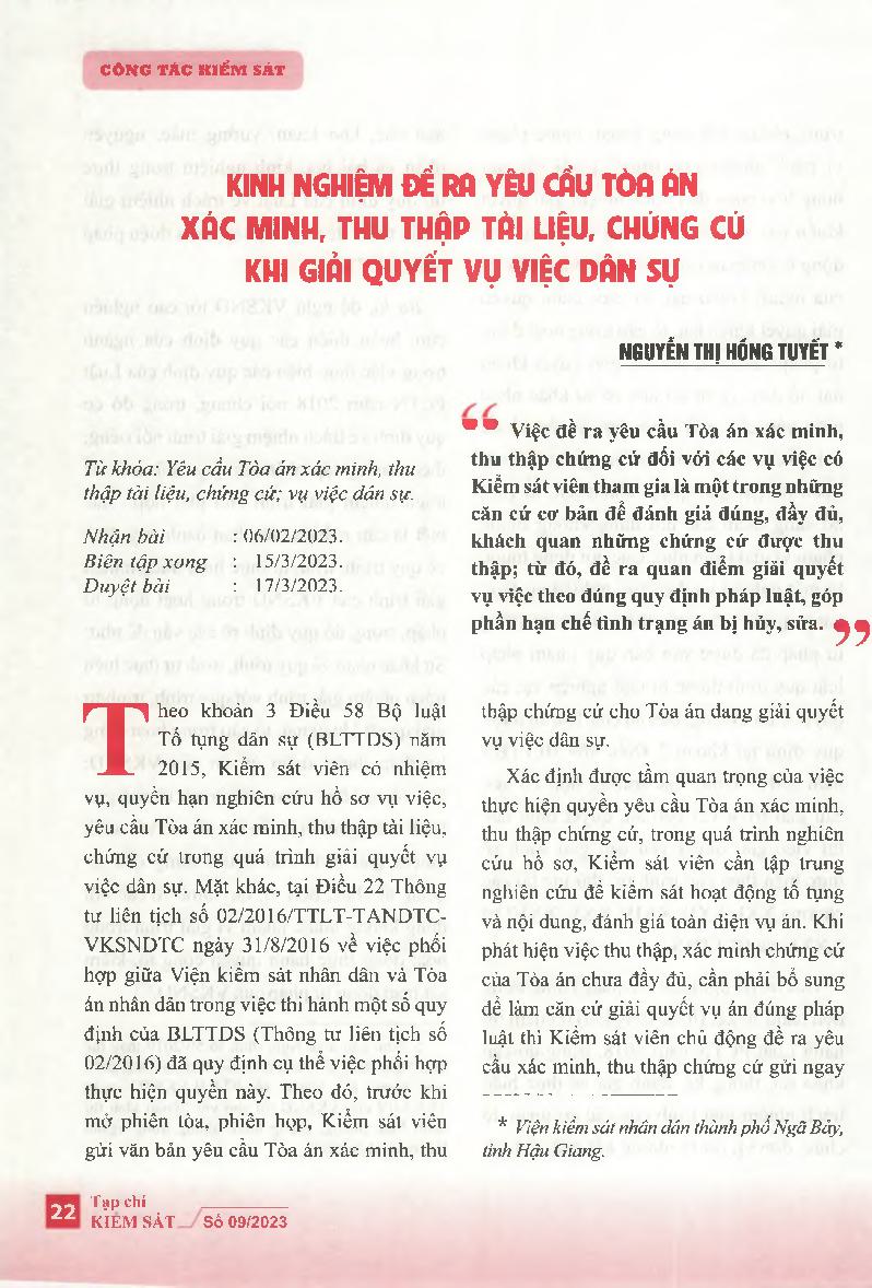 Kinh nghiệm đề ra yêu cầu Tòa án xác minh, thu thập tài liệu, chứng cứ khi giải quyết vụ việc dân sự