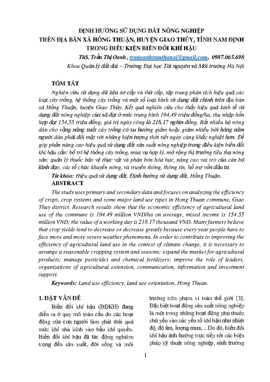 THỰC TRẠNG CÔNG NGHIỆP HÓA, HIỆN ĐẠI HÓA NÔNG NGHIỆP, NÔNG THÔN Ở HUYỆN NGỌC LẶC HIỆN NAY - MỘT SỐ ĐỀ XUẤT, KIẾN NGHỊ = INDUSTRIALIZATION, MODERNIZATION OF AGRICULTURE AND RURAL AREAS IN NGOC LAC DISTRICT - SOME SUGGESTIONS