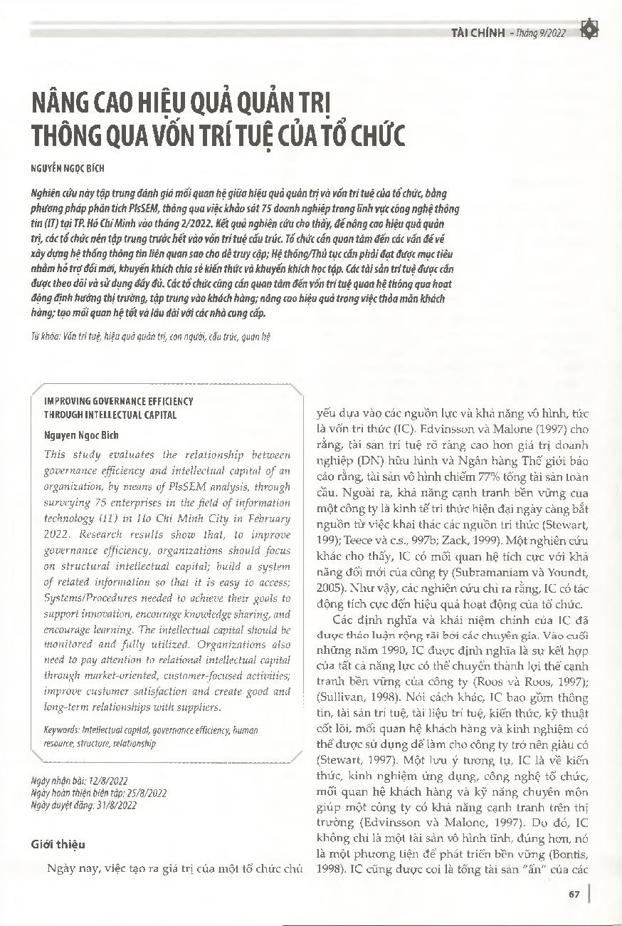 Nâng cao hiệu quả quản trị thông qua vốn trí tuệ của tổ chức = Improving governance efficiency through intellectual capital