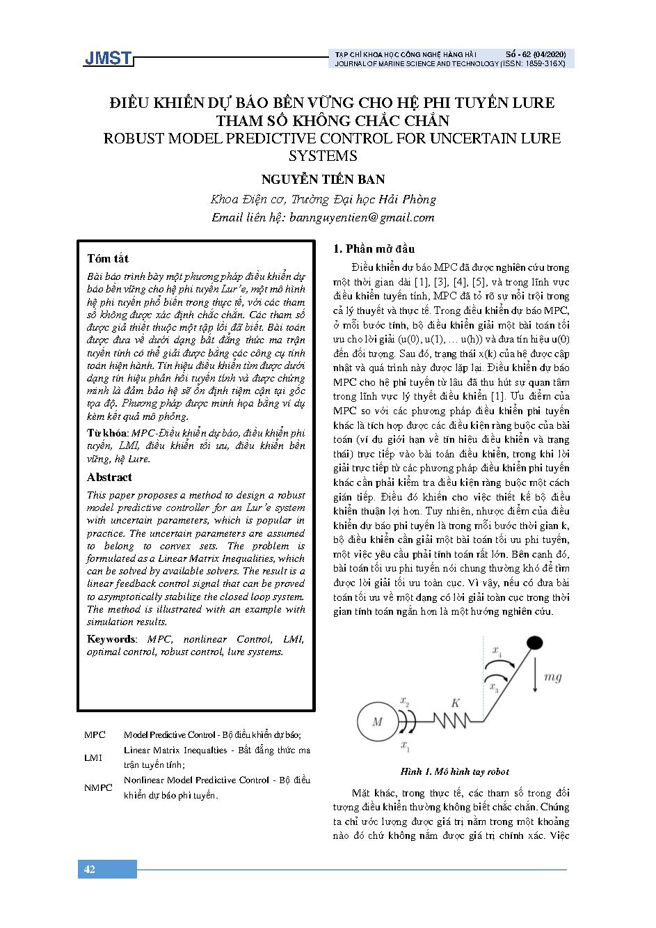 ĐIỀU KHIỂN DỰ BÁO BỀN VỮNG CHO HỆ PHI TUYẾN LURE THAM SỐ KHÔNG CHẮC CHẮN = ROBUST MODEL PREDICTIVE CONTROL FOR UNCERTAIN LURE SYSTEMS