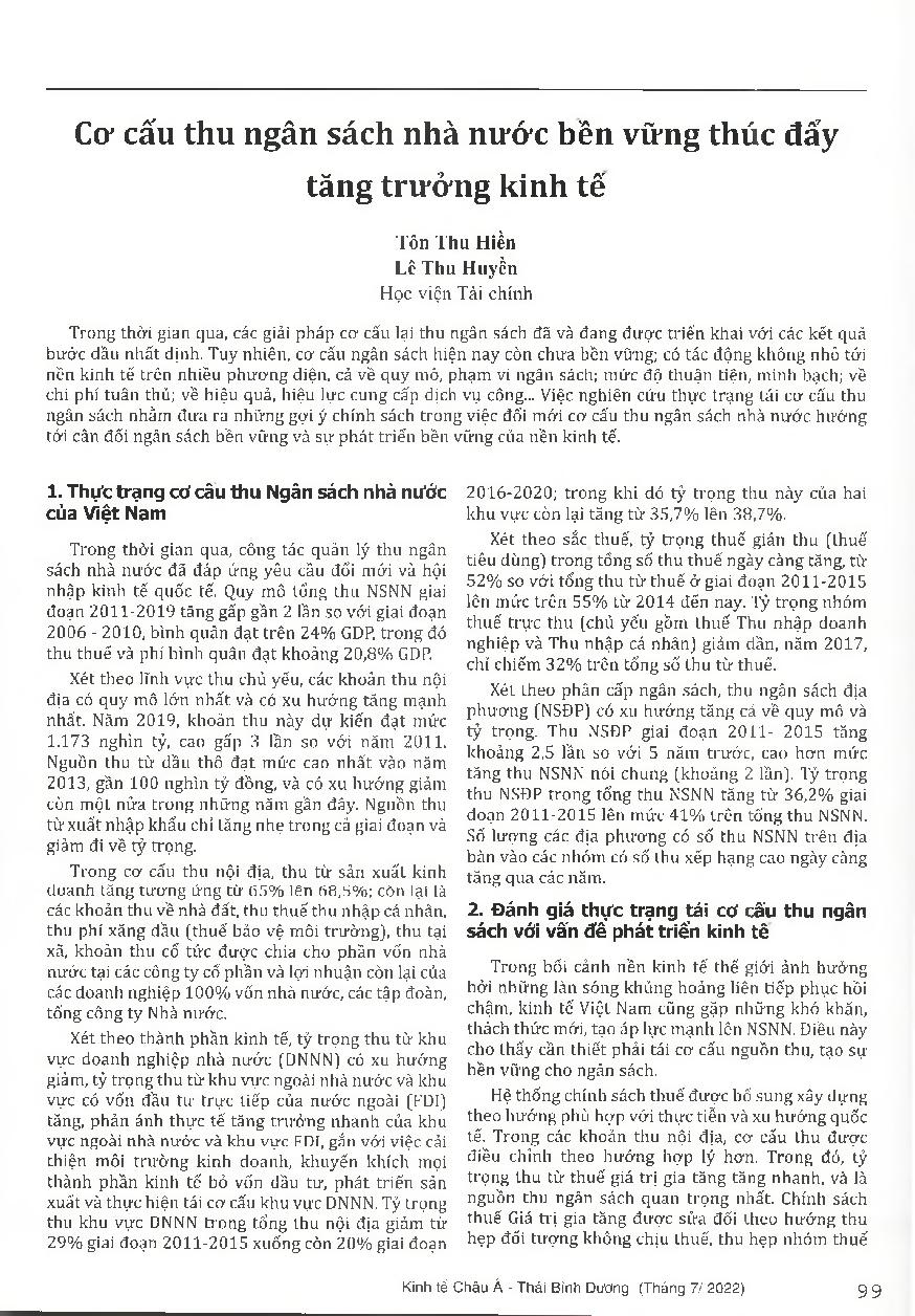 Cơ cấu thu ngân sách nhà nước bền vững thúc đẩy tăng trưởng kinh tế