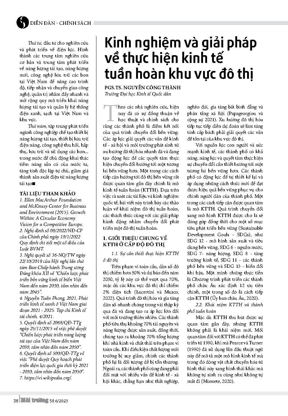 Kinh nghiệm và giải pháp về thực hiện kinh tế tuần hoàn khu vực đô thị