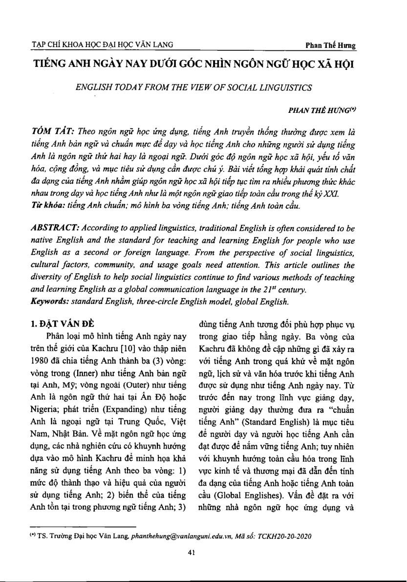 Tiếng Anh ngày nay dưới góc nhìn ngôn ngữ học xã hội = English today from the view of social linguistics