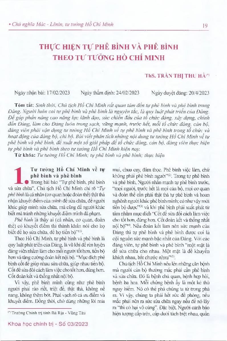 Thực hiện tự phê bình và phê bình theo tư tưởng Hồ Chí Minh