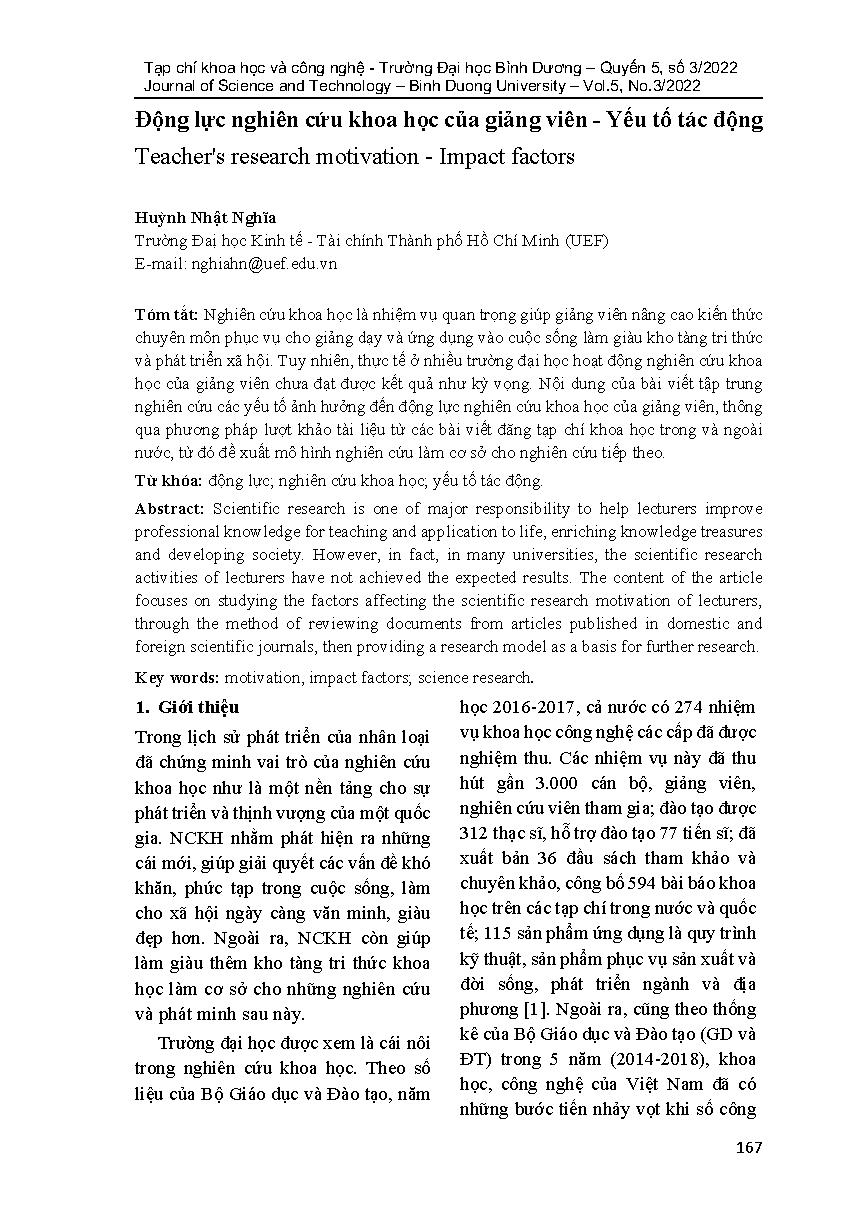 Động lực nghiên cứu khoa học của giảng viên - Yếu tố tác động = Teacher&; 39;s research motivation - Impact factors