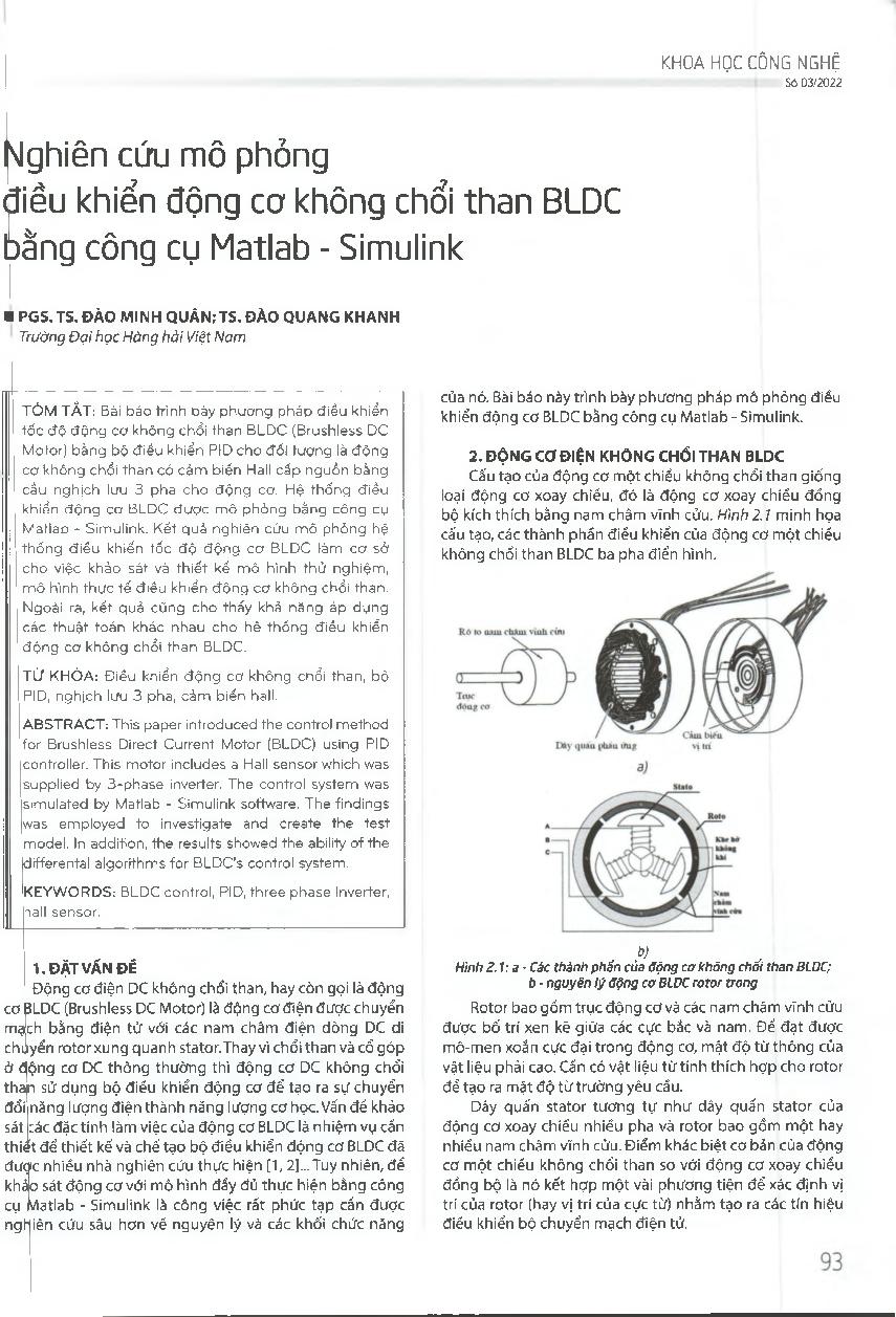 Nghiên cứu mô phỏng điều khiển động cơ không chổi than BLDC bằng công cụ Matlab - Simulink = Study on simulation of BLDC brushless motor control using Matlab tool - Simulink