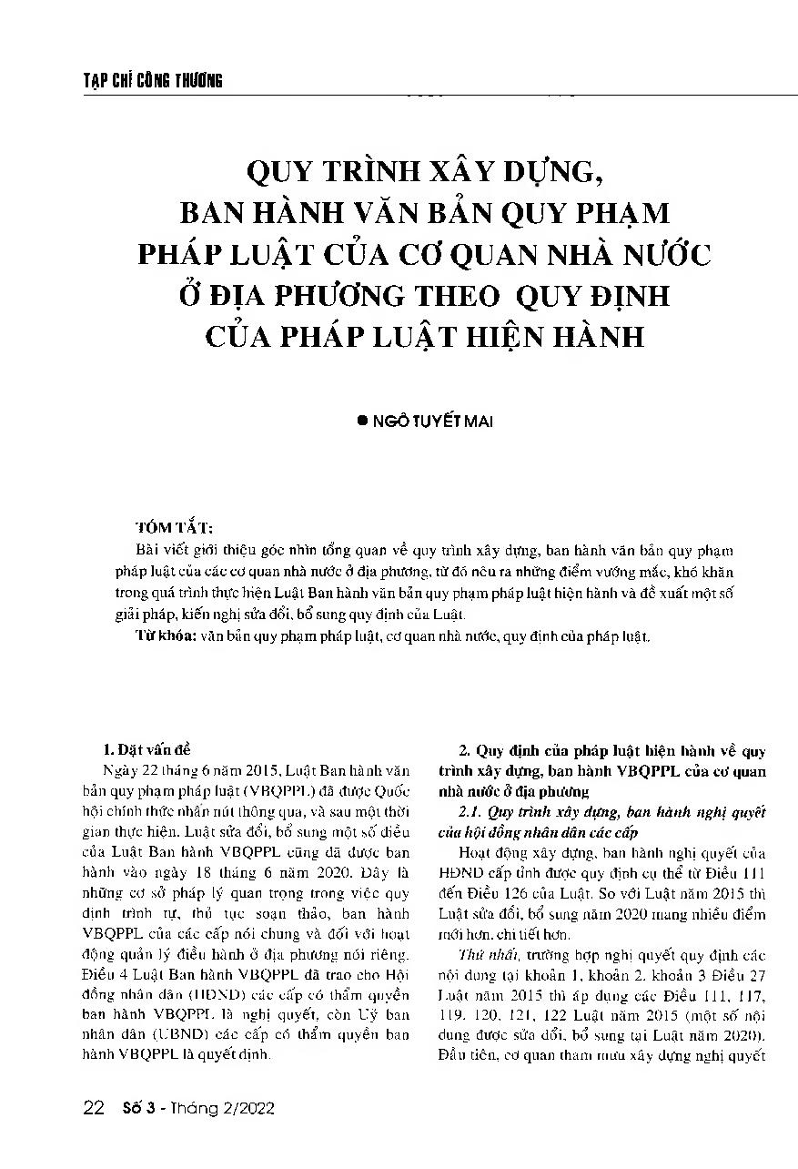 Quy trình xây dựng, ban hành văn bản quy phạm pháp luật của cơ quan nhà nước ở địa phương theo quy định của pháp luật hiện hành = Procedures for local State agencies construction and promulgation of legal documents under current law
