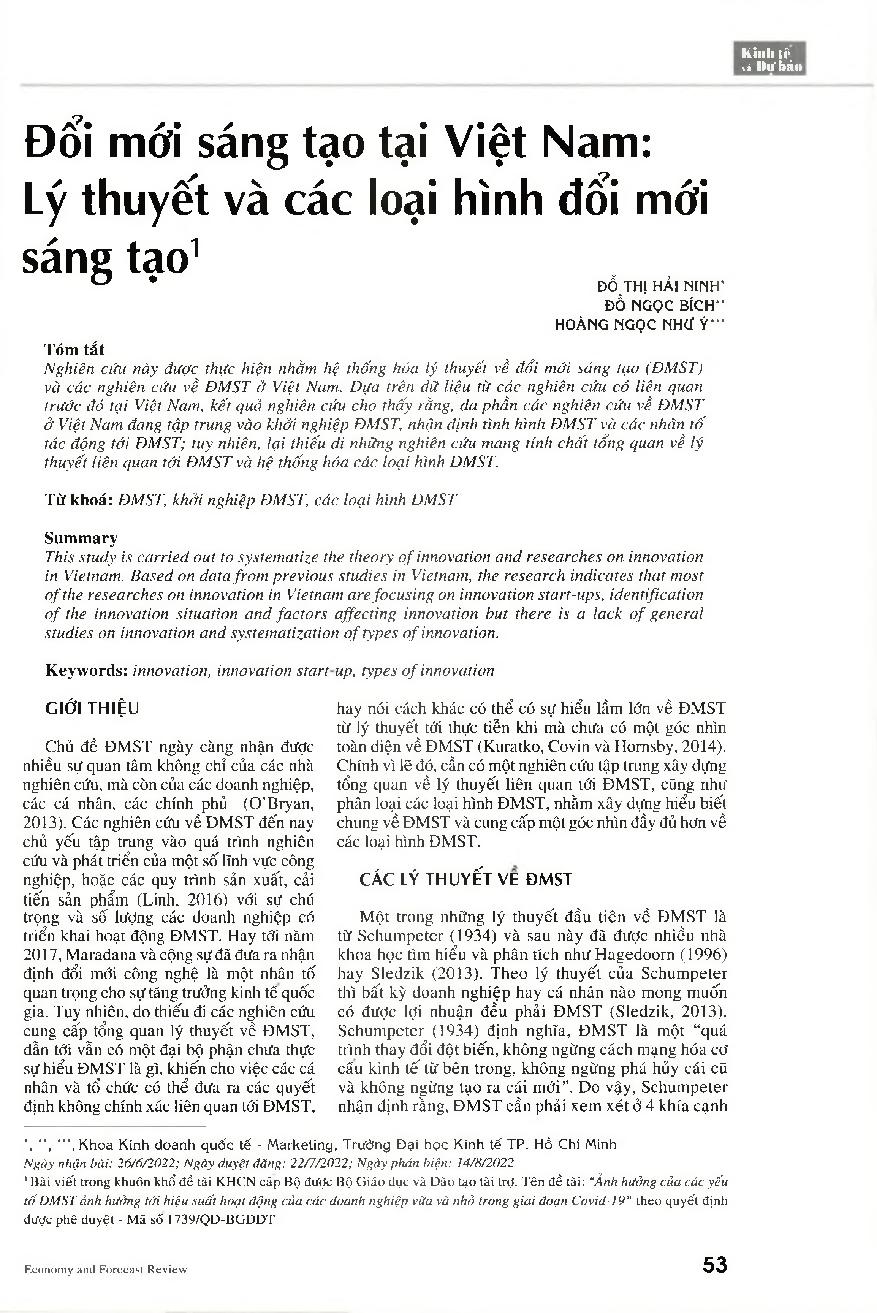 Đổi mới sáng tạo tại Việt Nam: Lý thuyết và các loại hình đổi mới sáng tạo = Theory and types of innovation in Vietnam