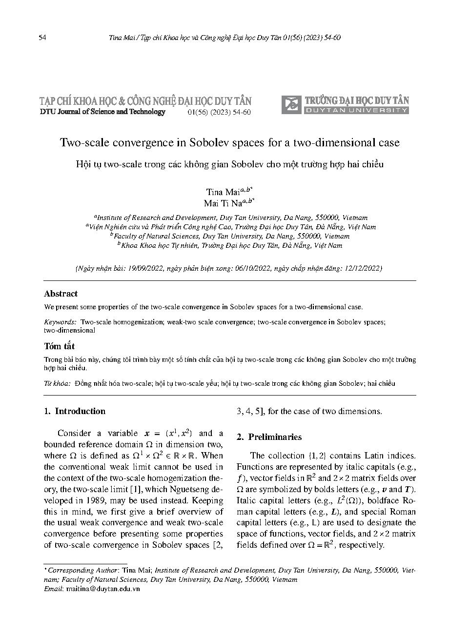 Hội tụ two-scale trong các không gian Sobolev cho một trường hợp hai chiều