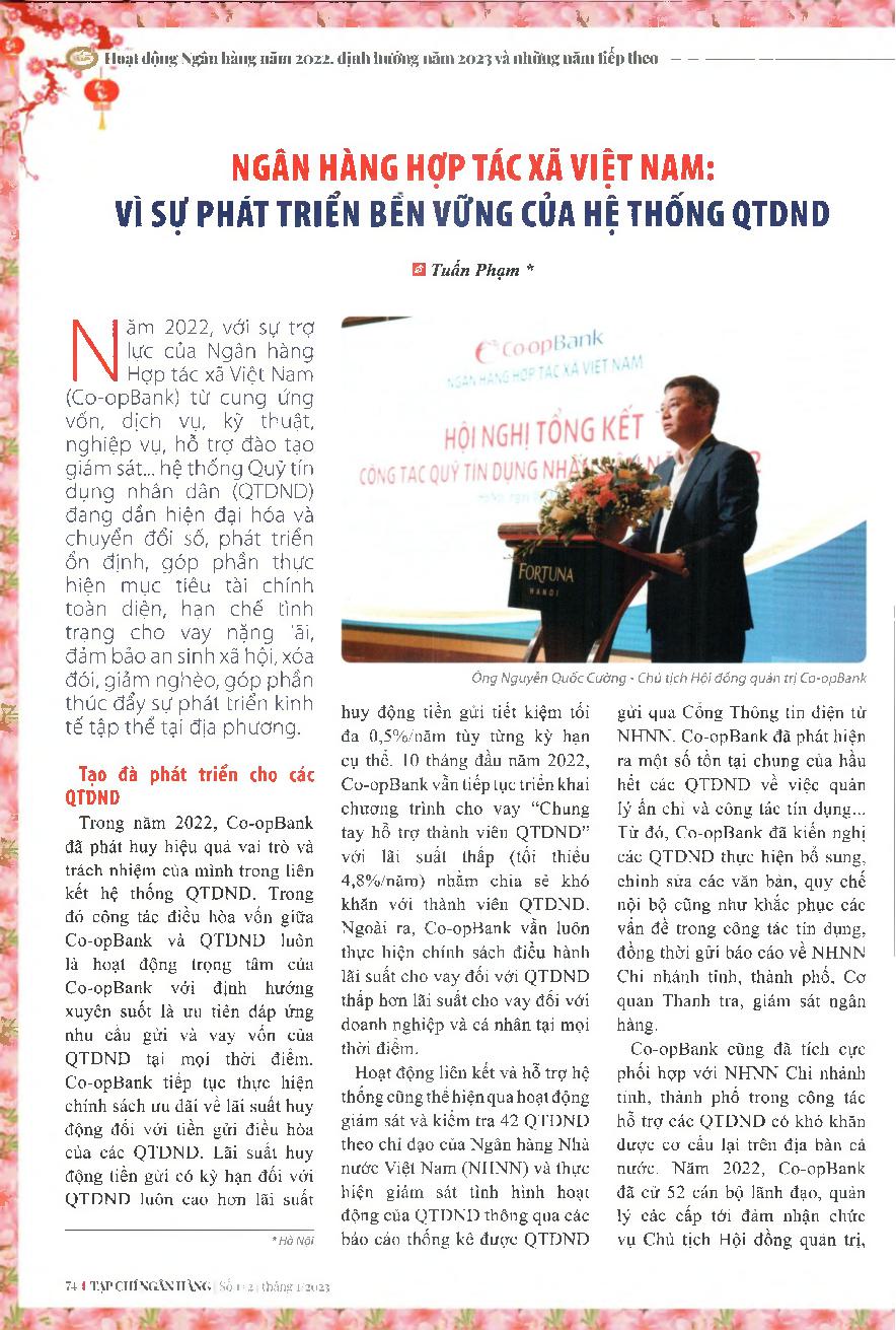 Ngân hàng Hợp tác xã Việt Nam: Vì sự phát triển bền vững của hệ thống QTDND = Cooperative Bank of Vietnam: For the sustainable development of the People's Credit Fund system