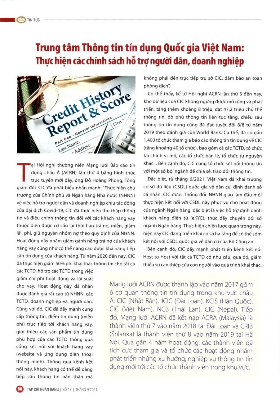 Trung tâm Thông tin tín dụng Quốc gia Việt Nam: Thực hiện các chính sách hỗ trợ người dân, doanh nghiệp