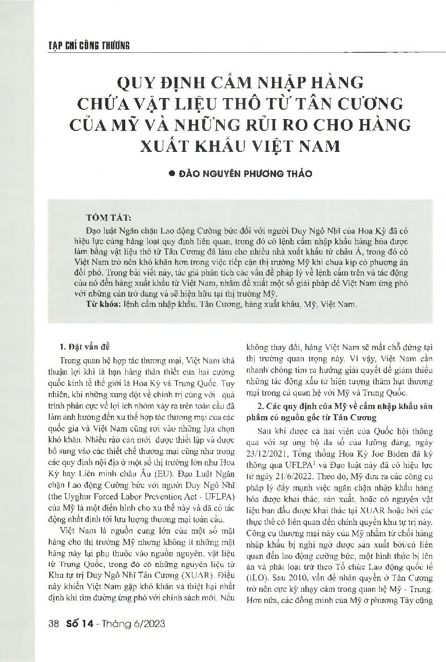 Quy định cấm nhập hàng chứa vật liệu thô từ Tân cương của Mỹ và những rủi ro cho hàng xuất khẩu Việt Nam