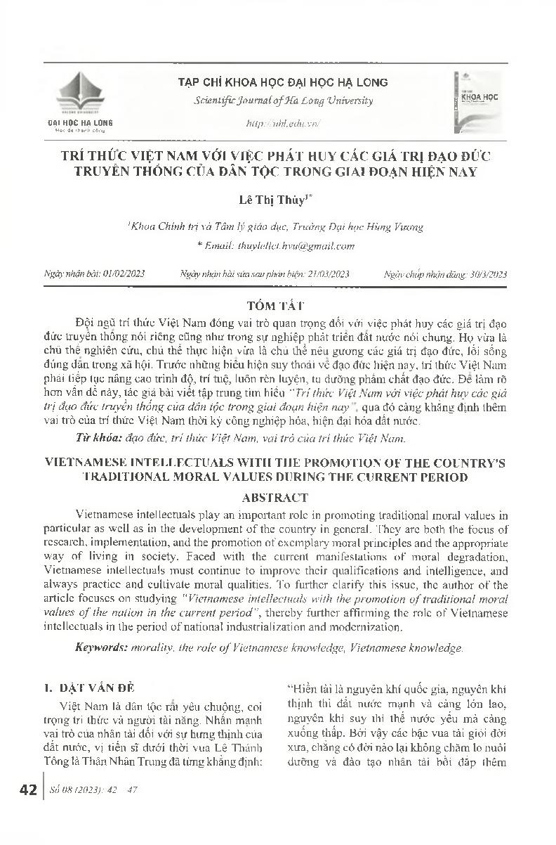 Trí thức Việt Nam với việc phát huy các giá trị đạo đức truyền thống của dân tộc trong giai đoạn hiện nay