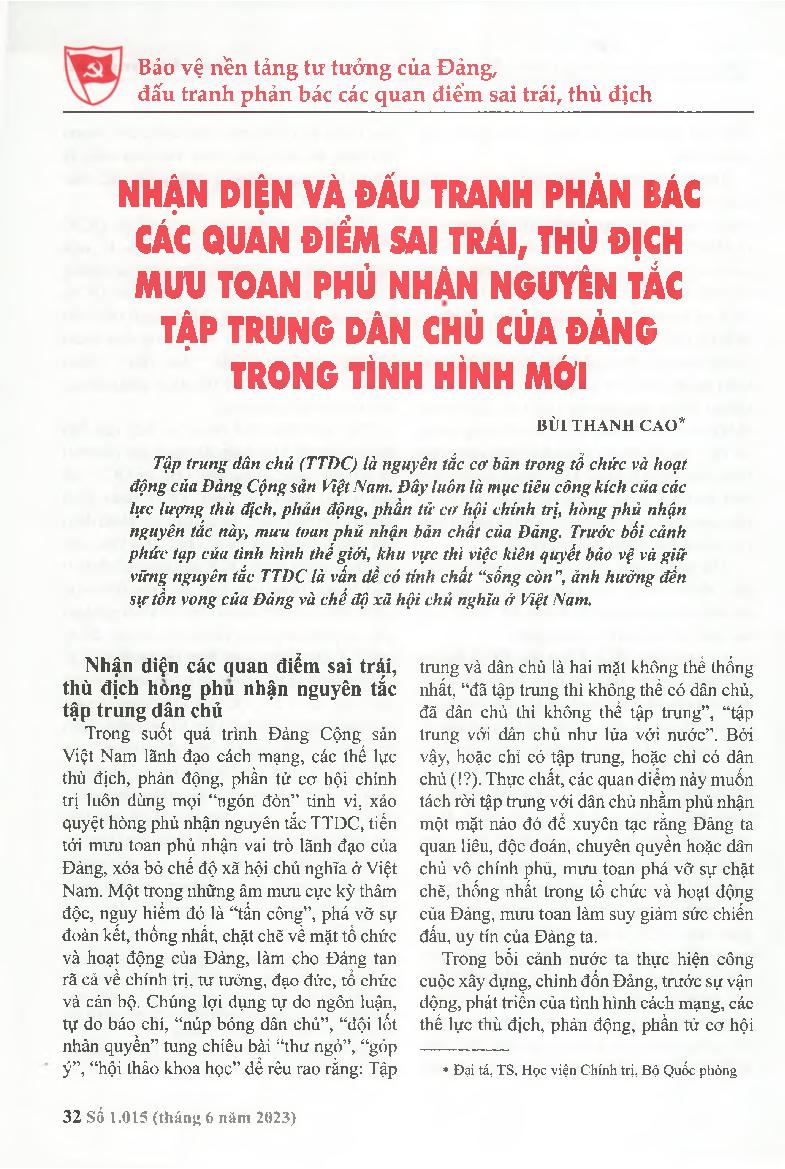 Nhận diện và đấu tranh phản bác các quan điểm sai trái, thù địch mưu toan phủ nhận nguyên tắc tập trung dân chủ của Đảng trong tình hình mới