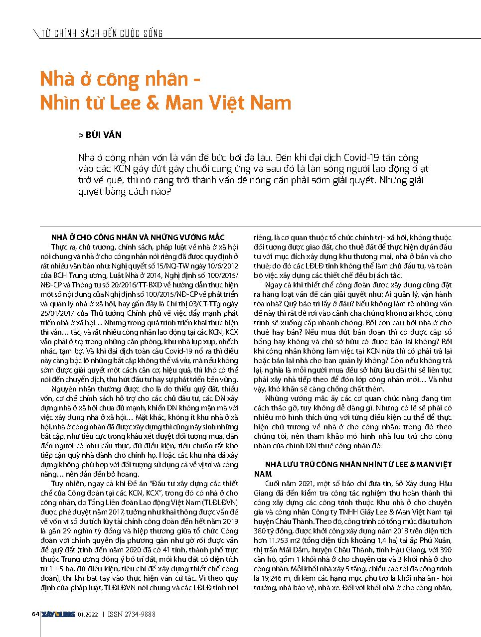 Nhà ở công nhân - Nhìn từ Lee & Man Việt Nam