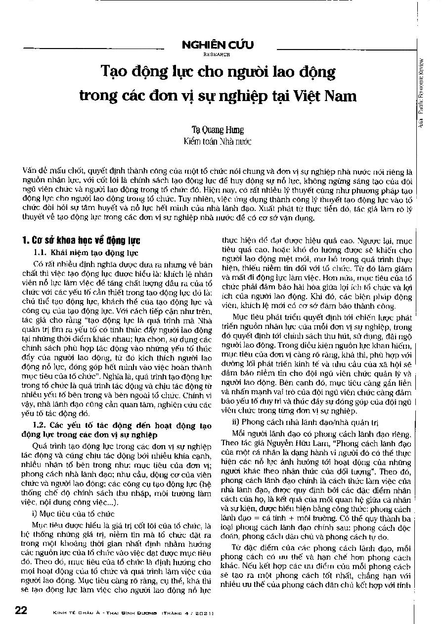 Tạo động lực cho người lao động trong các đơn vị sự nghiệp tại Việt Nam