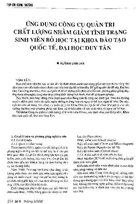 Ứng dụng công cụ quản trị chất lương nhằm giảm tình trạng sinh viên bỏ học tại Khoa Đào tạo Quốc tế, Đại học Duy Tân = Applying quality management tools to reduce the student drop-out rate at international school, Duy Tan university