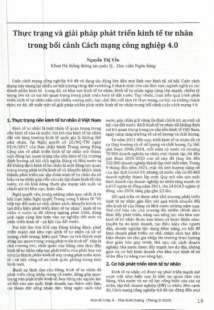 Thực trạng và giải pháp phát triển kinh tế tư nhân trong bối cảnh Cách mạng công nghiệp 4.0