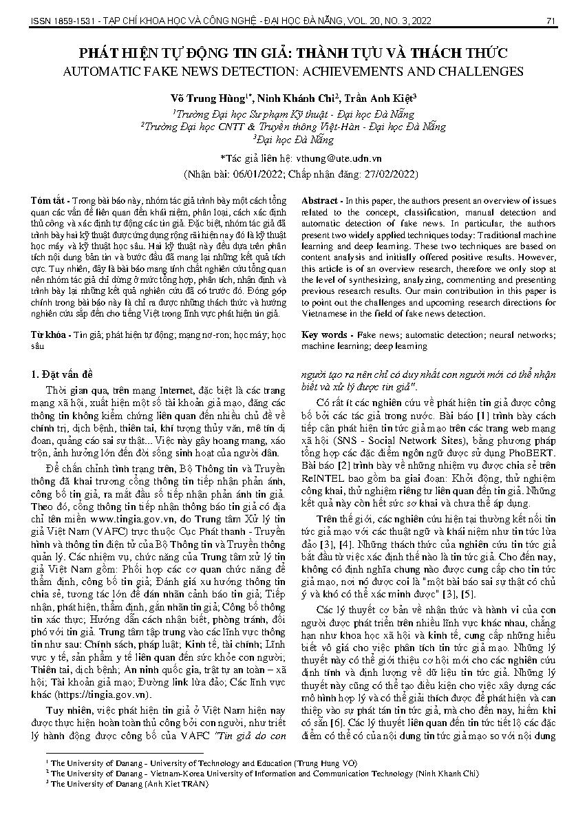 Phát hiện tự động tin giả: thành tựu và thách thức = Automatic fake news detection: achievements and challenges