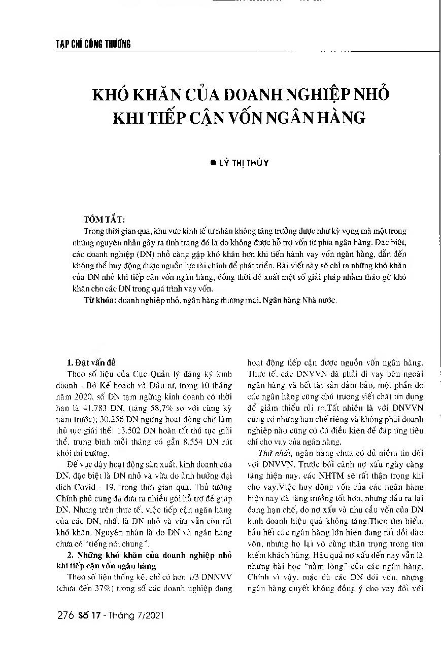 Khó khăn cùa doanh nghiệp nhò khi tiếp cận vốn ngân hàng = Challenges facing small-sized enterprises in accessing financial resources from banks