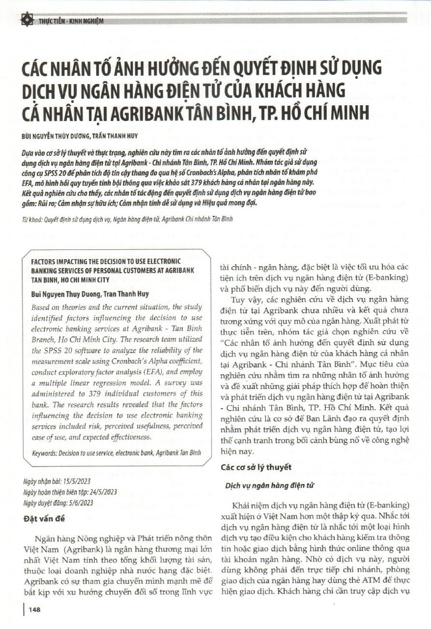 Các nhân tố ảnh hưởng đến quyết định sử dụng dịch vụ ngân hàng điện tử của khách hàng cá nhân tại Agribank Tân Bình, TP. Hồ Chí Minh