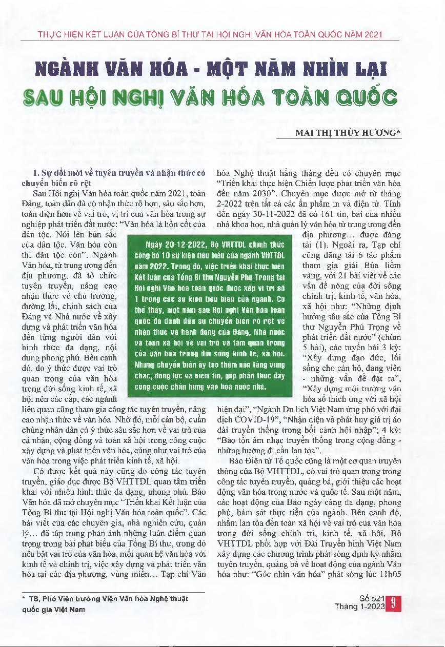 Ngành văn hóa - một năm nhìn lại sau hội nghị văn hóa toàn quốc