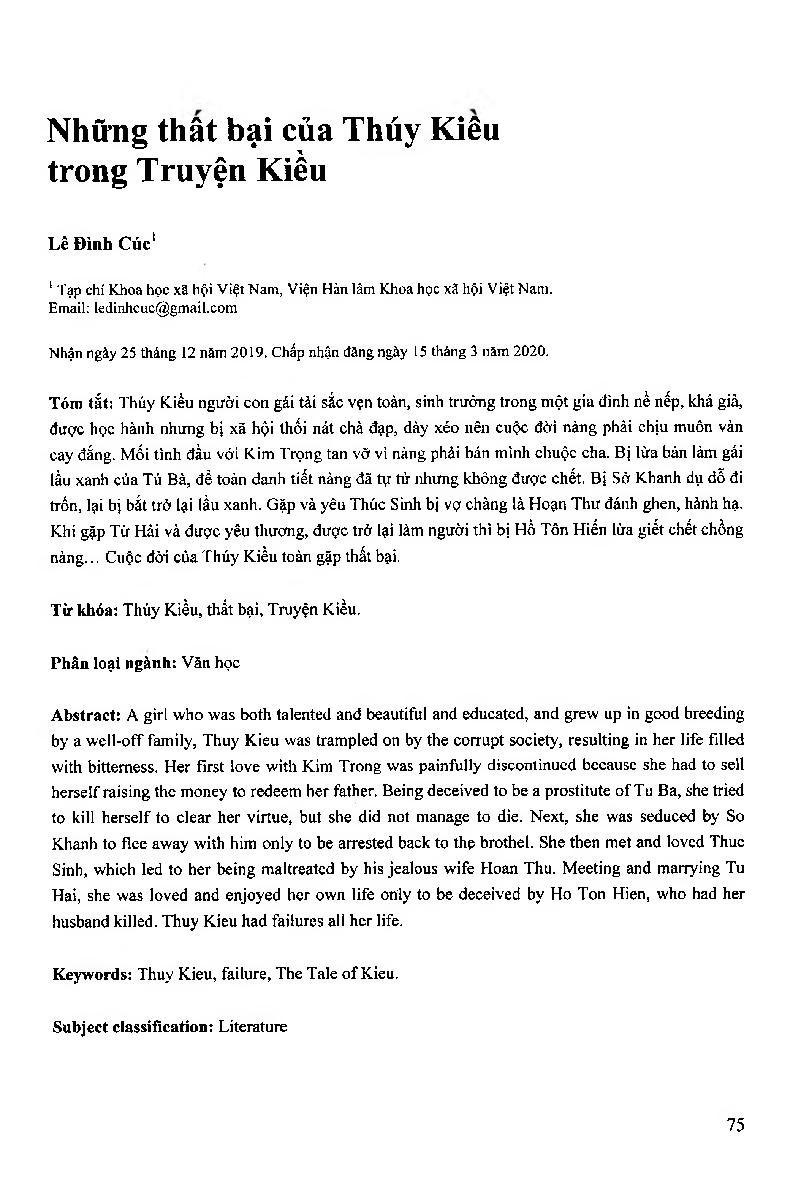Những thất bại của Thúy Kiều trong Truyện Kiều = Thuy Kieu's failures in the Tale of Kiều