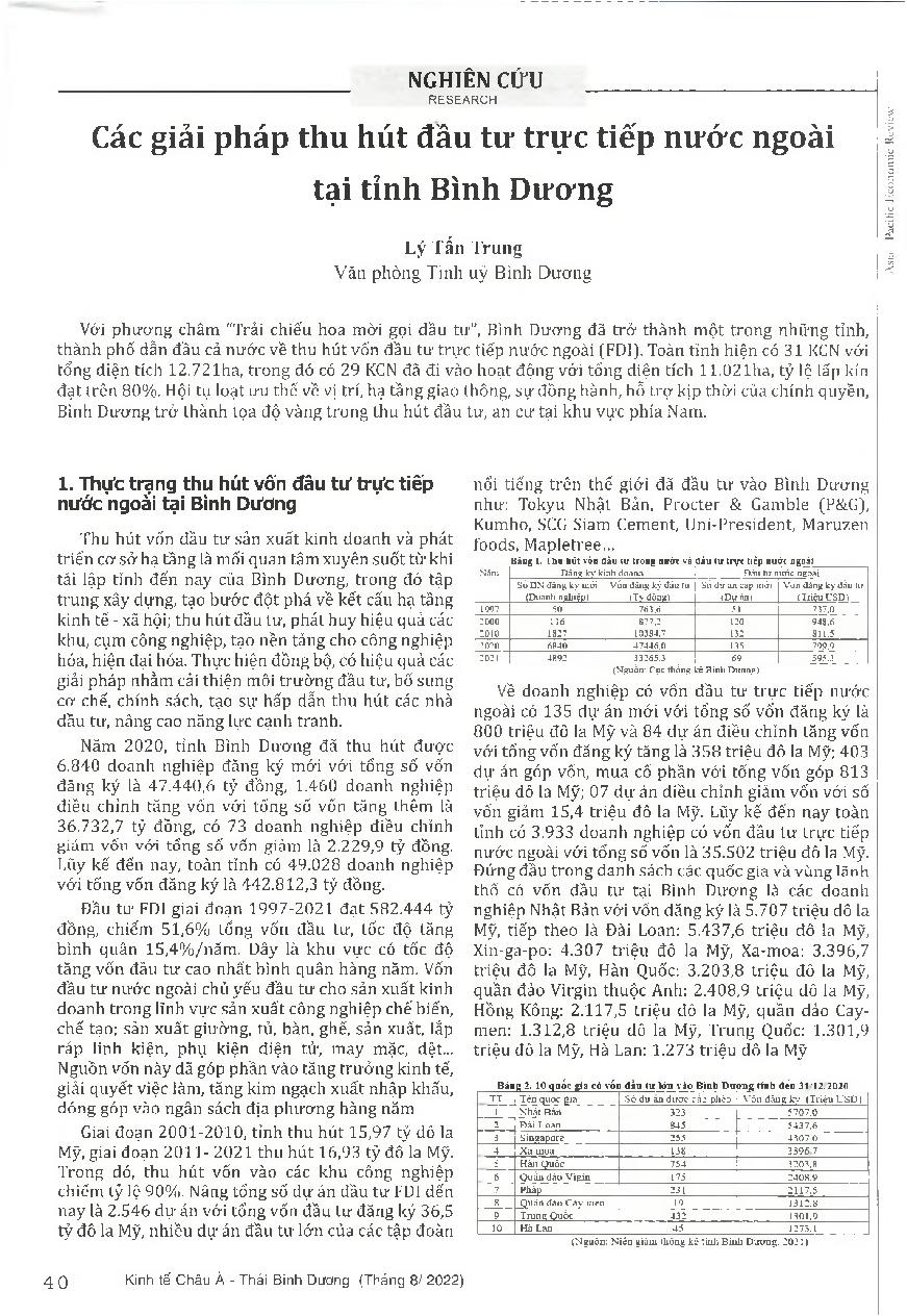 Các giải pháp thu hút đầu tư trực tiếp nước ngoài tại tỉnh Bình Dương