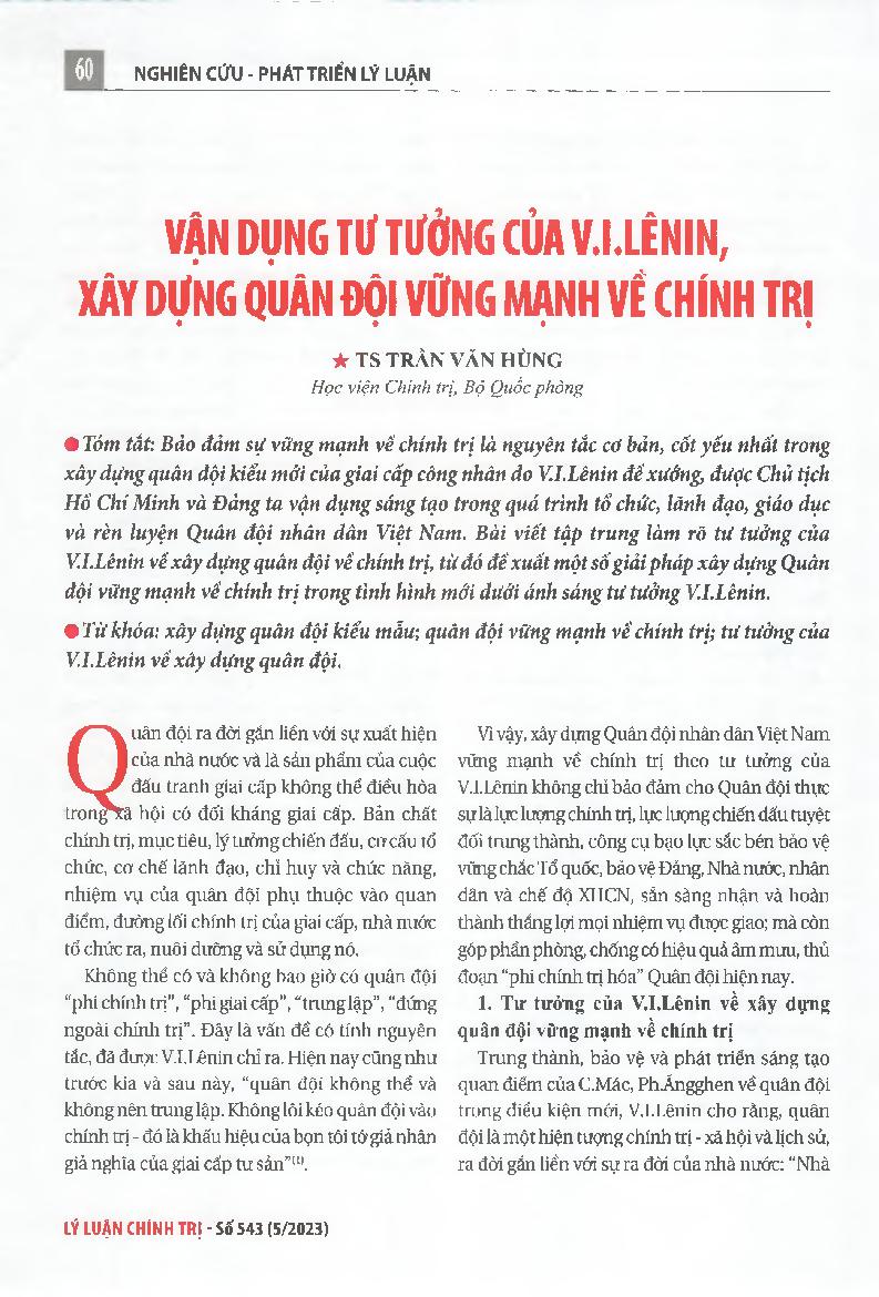 Vận dụng tư tưởng của V.I.Lênin, xây dựng Quân đội vững mạnh về chính trị