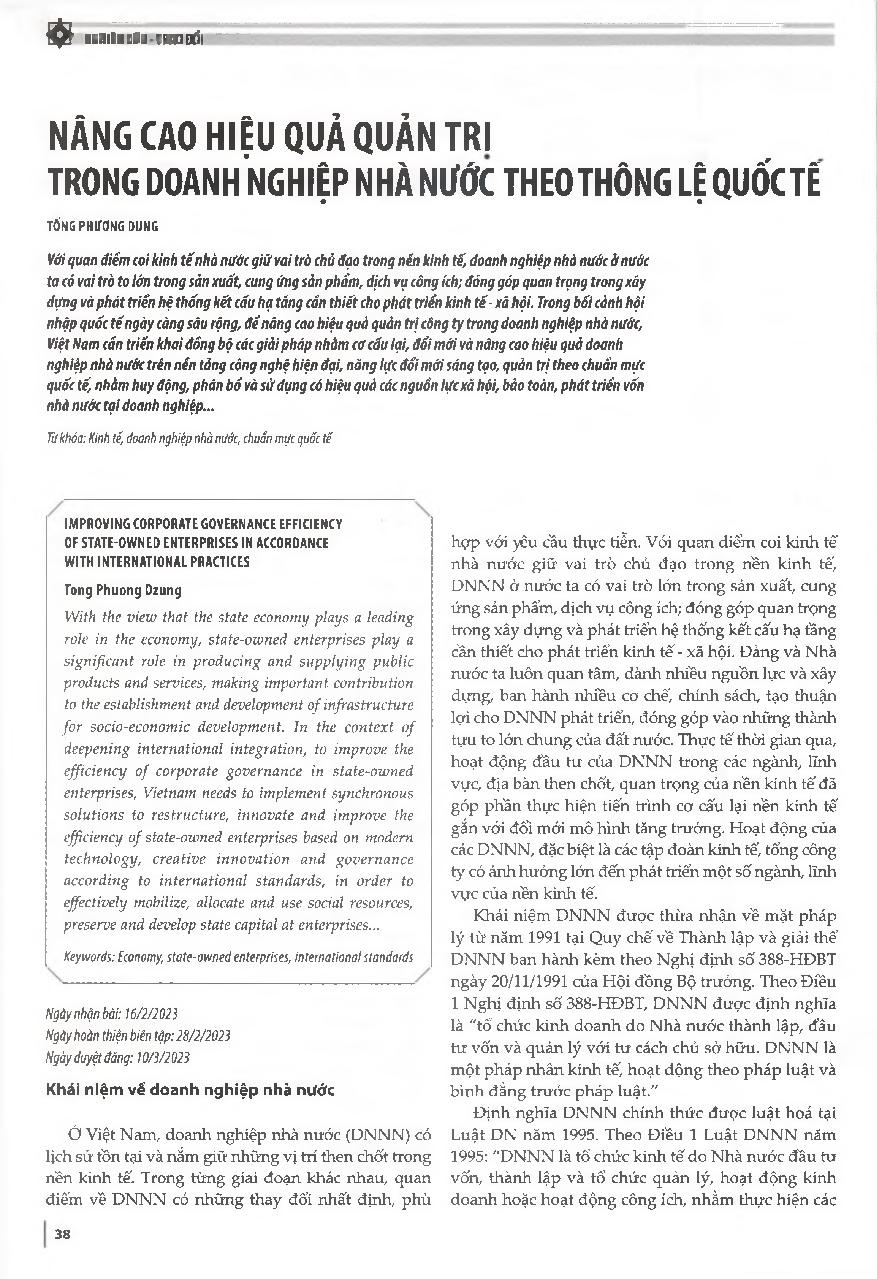Nâng cao hiệu quả quản trị trong doanh nghiệp nhà nước theo thông lệ quốc tế = Improving corporate governance efficiency of State-owned enterprises in accordance with international practices