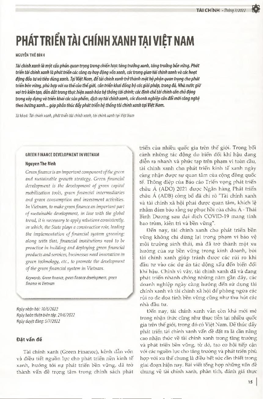 Phát triển tài chính xanh tại Việt Nam = Green finance development in Vietnam